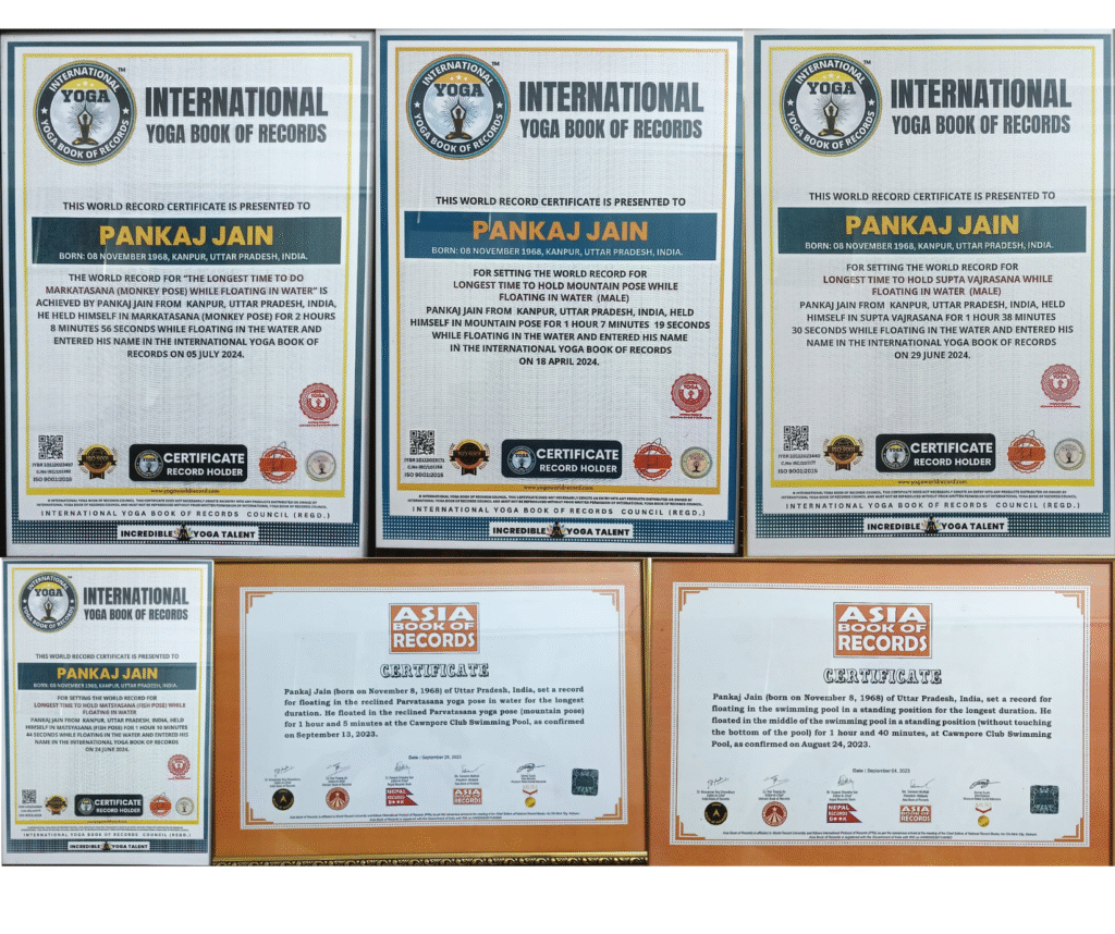 The most notable achievement – holding the Parvatasana (Mountain Pose) while floating in water for an extraordinary duration that set a new world standard.